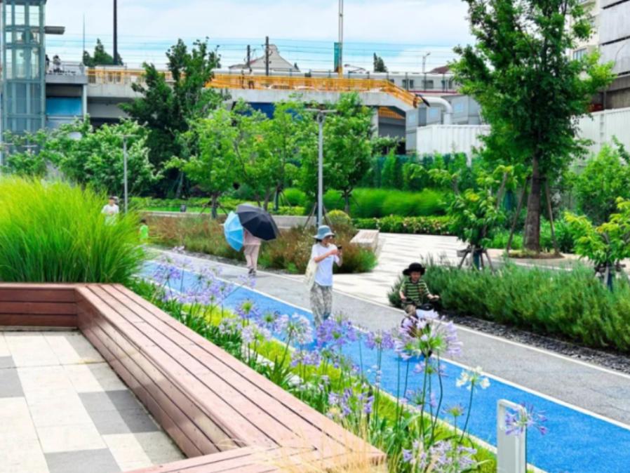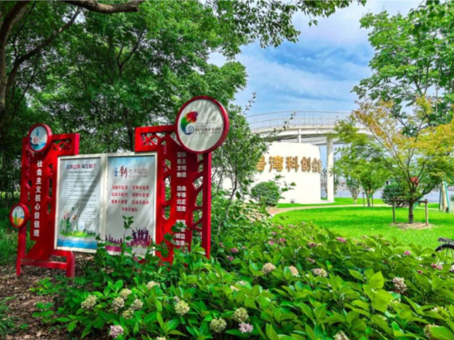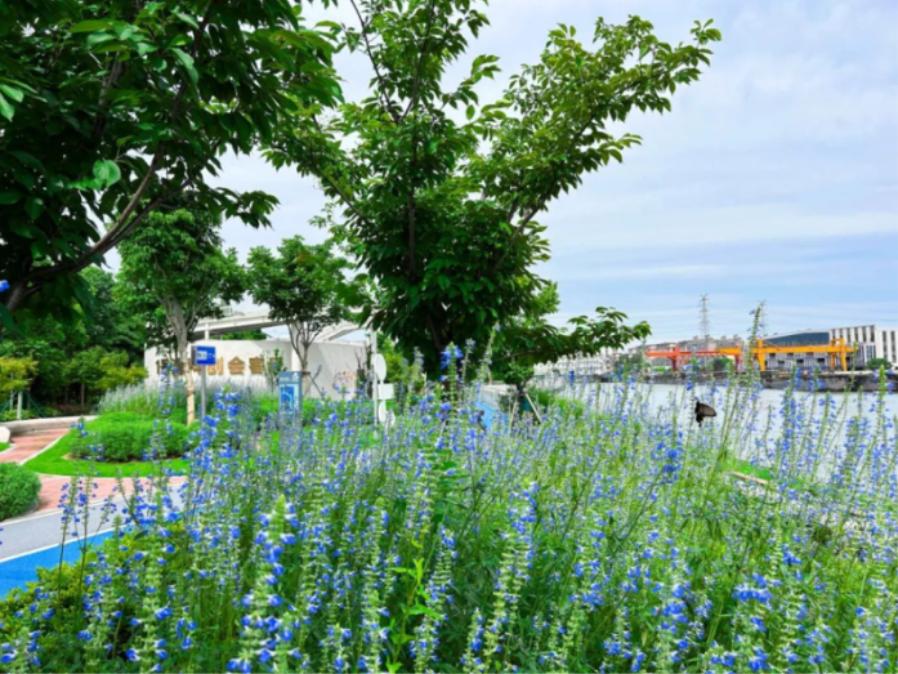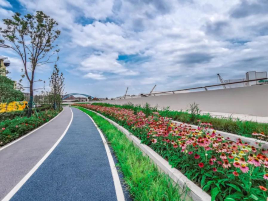 值得一提的是,沿滨江步道设置的每一个绿色花坛都是由园区党组织收集的,分为八个责任区。支部党员自发组成花坛守护队,通过微信群分享养护经验,开设环保宣传牌,定期聚集志愿者进行锄草等公益活动,共同守护绿色净土。