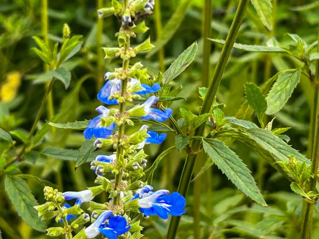 天蓝鼠尾草,又称沼生鼠尾草,是唇形科多年生植物。它开着蓝紫色到粉紫色的花,有香味,叶子有浓郁的香味。茎顶花序上出生6-10朵花非常漂亮。
