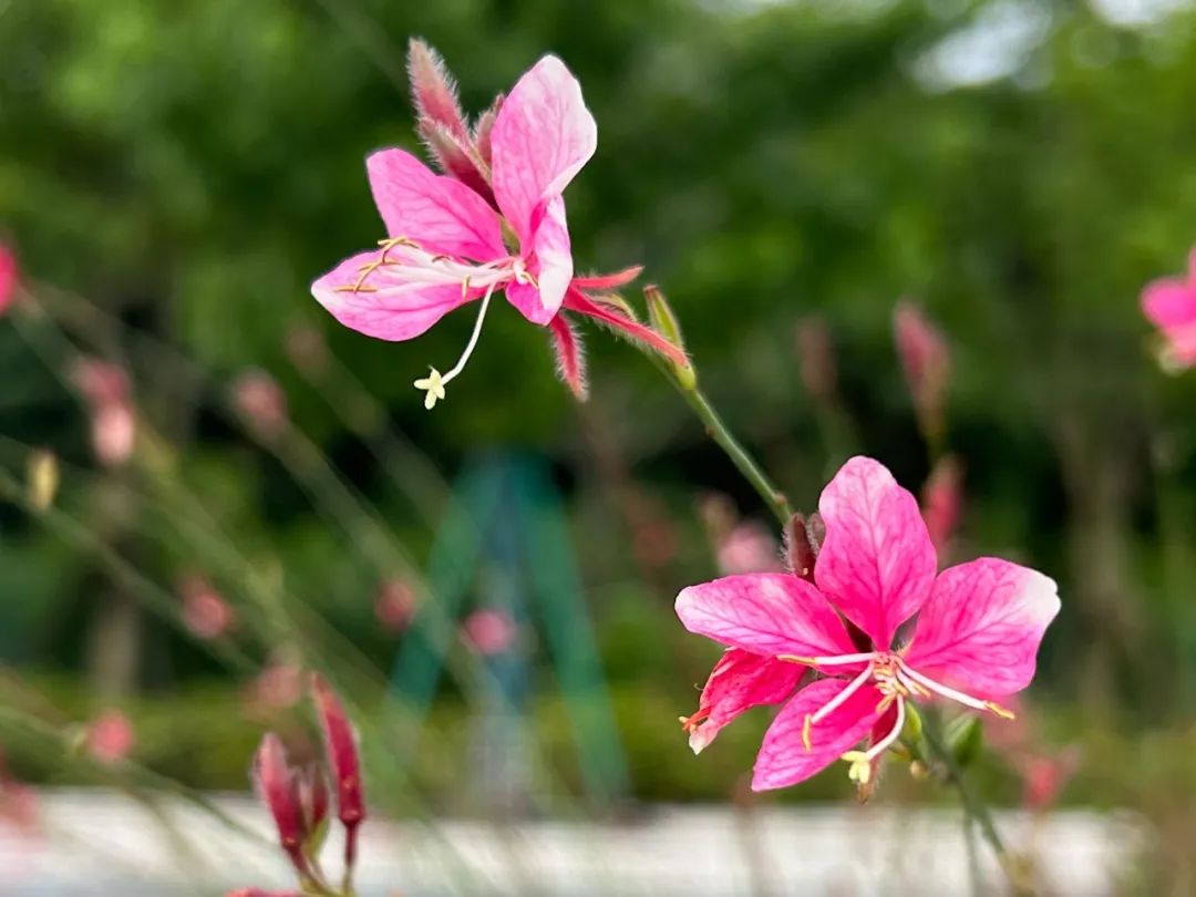 山桃草是柳叶菜科月见草的一种多年生草本植物。原产于美国,花期5-9月,果期8-9月。山桃草之所以被命名为山桃草,是因为它的花是粉红色的,就像桃花一样。山桃草具有很高的观赏价值,适合群栽,可供花坛、花境、被子、盆栽、草地点缀,适用于园林绿地,多片群植。山桃草诗说:“曼妙参差容更美,常居荒野任风弹。清真优雅尤赞许,冷眼红衣取人欢。”
