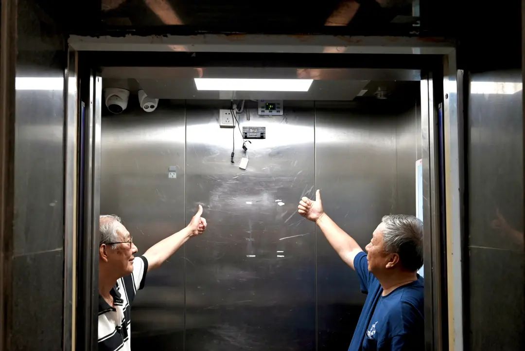 为了“想居民的想法,急居民的焦虑”,今年南楼物业主动在电梯轿厢内提前安装了空调。“比以前合适多了。阿拉老了,上下楼梯更舒服。”看到记者来了,居民陶老伯对这个充满“人情味”的惠民实事竖起了大拇指。