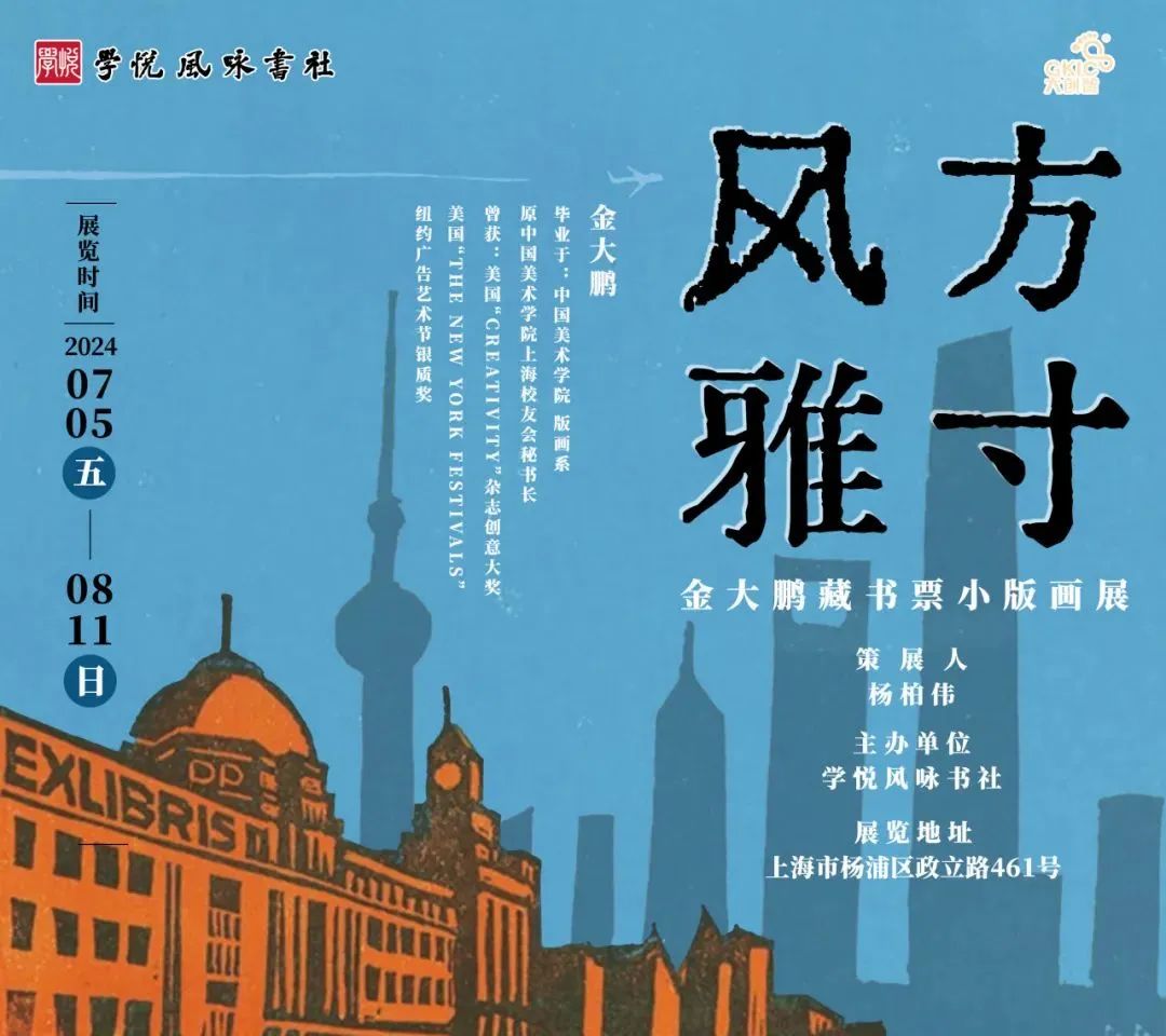 今天(7月5日)至8月11日,由学悦风咏书俱乐部主办的“方寸优雅——金大鹏藏书票小版画展”将在学悦文化艺术空间举办。本次展览涉及上海、传统、艺术、名人、属相、阅读六大主题,展出80多部作品,是金大鹏艺术成就的集中呈现。