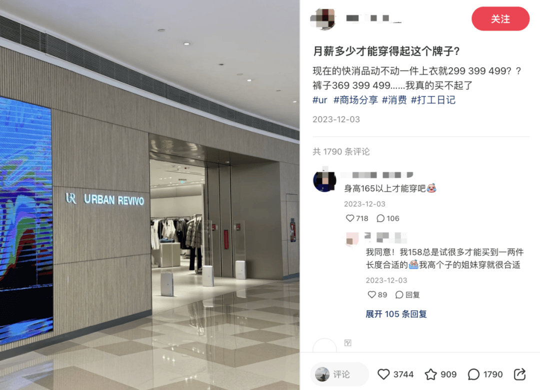 UR被很多网友嘲讽的是,它所谓的“快奢”更多的是体现在价格上,而不是实质性的提升。“这个牌子一个月能穿多少?”在小红书上,有网友发了一张笔记,说:“现在的快消品总是一件外套299。 399 499,裤子369 399 499,我真的没钱买。”