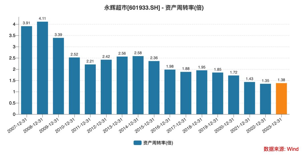与此同时,自上市以来,公司的资产周转率处于最低水平。,2021-2023年分别为1.43倍、1.35倍和1.38倍。
