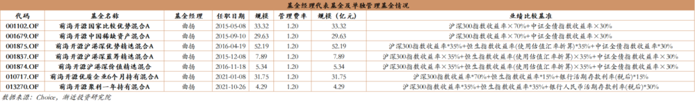 5、虽然大部分时间曲扬并没有体现出宏观的择时倾向,但实际上他在2018年初管理了一些基金清仓股票,买入了债券,然后在2018年第三季度满仓证券股票。这两项操作使他不仅在2018年损失很少,而且在2019年初的市场上涨中获得了超高的回报。但鉴于他在2021年至今的熊市中没有类似的操作,我们建议风险偏好较高的投资者将曲扬视为一名优秀的平衡基金经理。