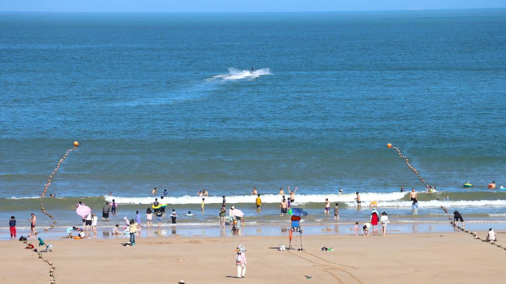 浙江温州南麂列岛,2024年7月5日,游客们在海边玩耍。 视觉中国 图