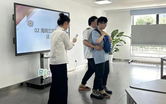 “如果你不小心掉进水里,你必须保持理智。不要在水里挣扎。用双手抱住膝盖,保持身体蜷曲。如果你选择水母漂浮,你的身体会逐渐露出水面。”现场,宝山区普莱德青年应急救援服务中心的老师向大家讲解了溺水后的自救情况。