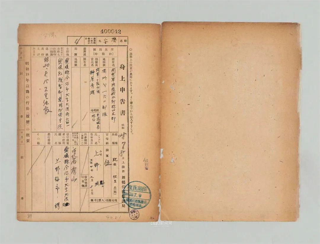 第一次公开!侵华日军731部队林口162支部队《身上申告书》对外公布