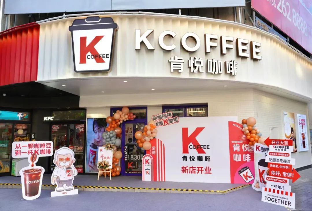 2014年,KCOFFEE(肯悦咖啡)已经出现在肯德基商店,直到现在,许多肯德基商店仍然存在着“KCOFFEE”“招牌。KCOFFEE的平价现磨咖啡在2016年累计销售额超过1亿杯。
