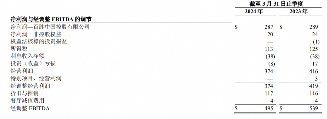 根据百胜中国2024年第一季度的财务报告,总收入为29.6亿美元,同比增长1%。但是,从收入增长的角度来看,净利润为2.87亿美元,同比下降0.7%,经营利润为3.74亿美元,同比下降10%。