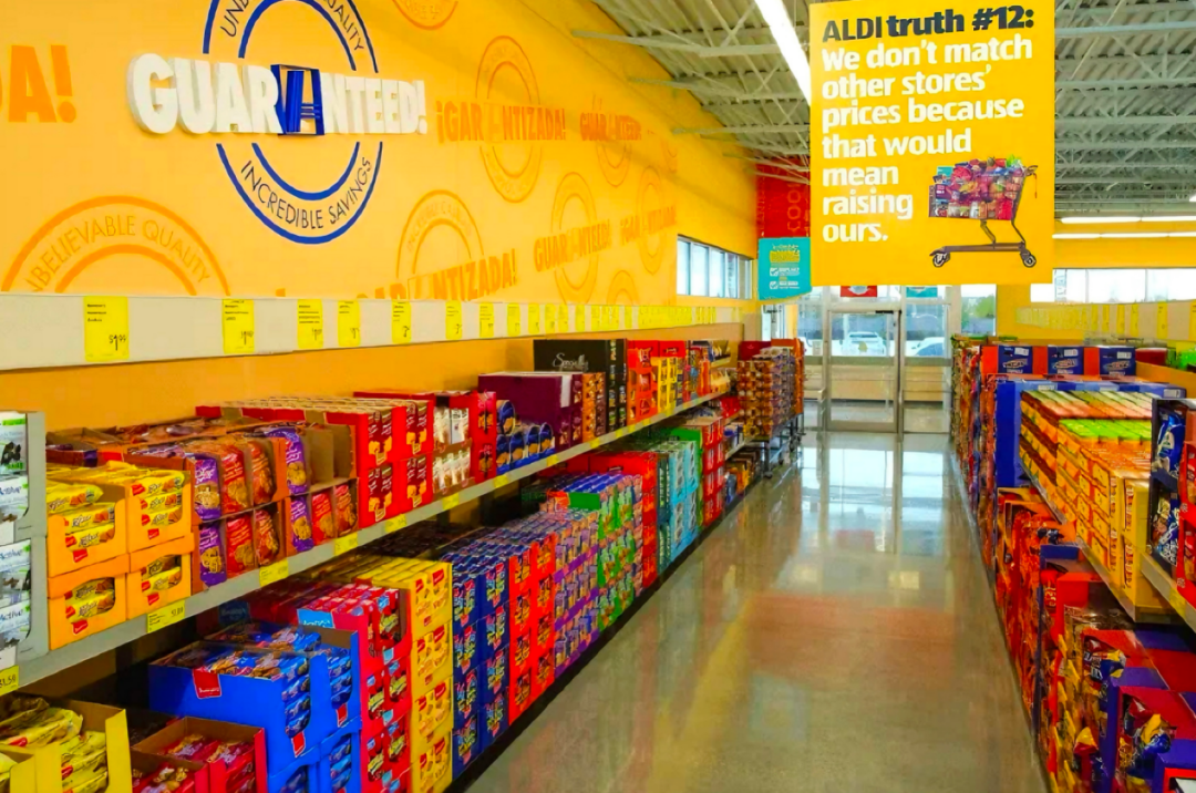 在店铺运营方面,ALDI几乎放弃了店铺装修阶段,甚至把必要的货架改成了纸箱展示,既节省了货架成本,又节省了整理货架的人工成本。