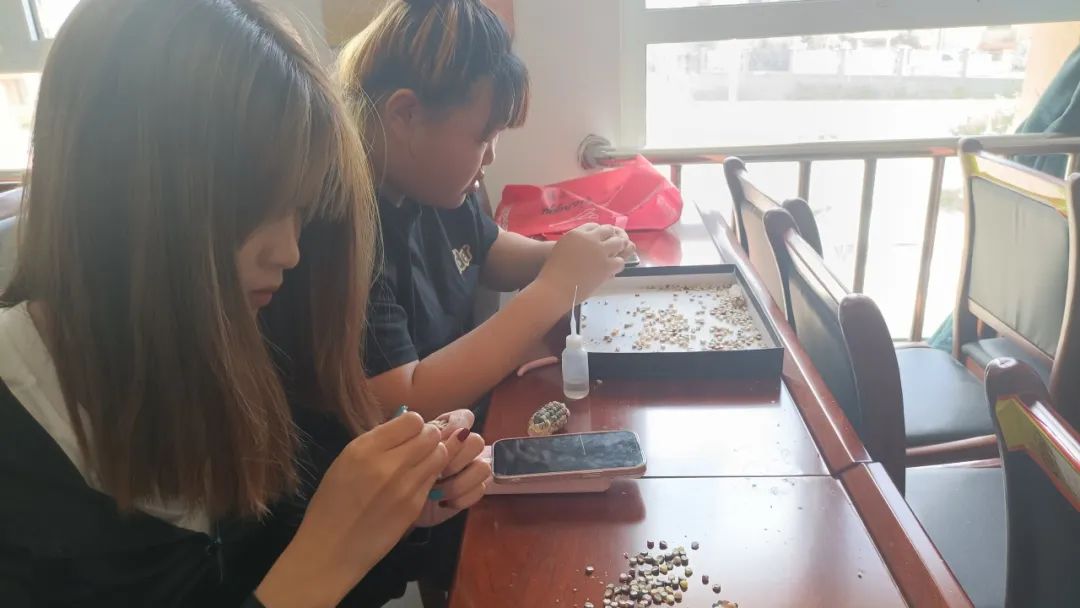 “按照一个计算,加工一个平均值可以赚13元的人工成本,但并不容易。从种子选择、嵌入、粘合到饰品,需要极大的耐心和细心。如果你不小心,你甚至会失去原材料。”