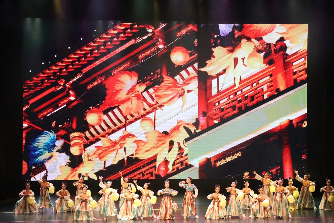 演出在美丽动人的《灯光上的月亮故乡》中拉开帷幕。一群穿梭时空的女孩手持宫灯登台,端庄优雅的舞蹈展现出“大唐魅力”。;五彩缤纷的彝族展现了少数民族丰富多彩、奔放的舞蹈特色;在《盛世敦煌》中,女孩们轻盈灵动的身姿诠释了中国舞蹈的古典与华丽...