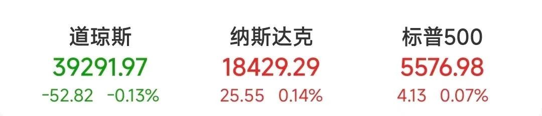 当地时间7月9日,美股三大指数收盘涨跌不一。道指下跌52.82点,下跌0.13%,上涨39291.97点;纳指上涨25.55点,上涨0.14%,上涨18429.29点;标准普尔500指数上涨4.13点,上涨0.07%,上涨5576.98点。