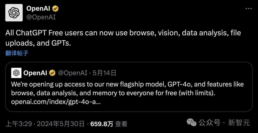 另外,新款GPT-4o于5月推出并免费提供使用,标志着公司首次免费提供GPT-4型号。