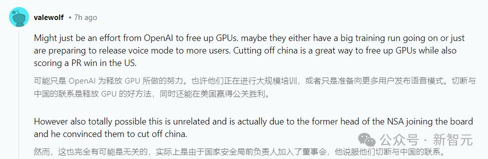 网友锐评,「这是美国国家安全局的决定。」。(在OpenAI发布此通知的前夕,其安全团队刚刚迎来了一名美国退伍军队)