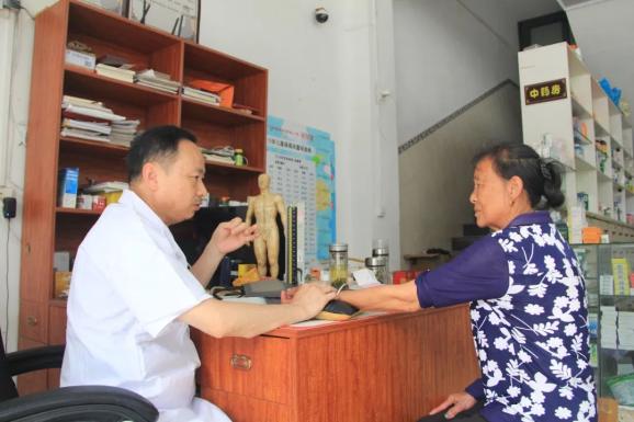 ▲在村卫生室,黄月明为村民确诊病情。