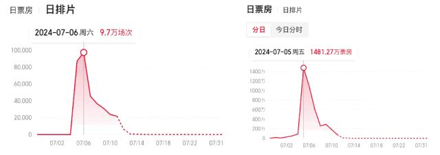 据猫眼专业版数据显示,上映第一天,不敌上映三天的《默杀》,在排片占20%的情况下,客座率仅为3.6%,最终获得1481万票房。起步不利,影院纷纷调整电影安排策略,黄金比例从最初的20.5%下降到4.6%,日票房下降到1000万以下,猫眼和灯塔也分别下降预测票房,从最初的1亿减少到5587.7万和6031.1万。