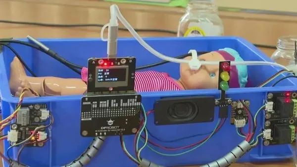 发明创新作品《一个新的智能安全游泳池》在安徽省选拔赛中获得一等奖。游泳池模型可以实现水质安全检测和防溺水报警两大功能,体现了学生敏锐的科技创新观察和创新能力。在全国决赛中,庐江实验中学在水科技领域的深厚底蕴和学生的创新实力得到了充分展示,尽管作品获得了“优秀奖”。