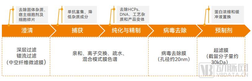膜过滤技术贯穿于生物制药的上下游环节。生物过滤主要分布在培养液过滤、气体过滤、缓冲液过滤、澄清过滤、浓缩更换、柱前/超滤前保护过滤、病毒过滤、杀菌过滤等工段。