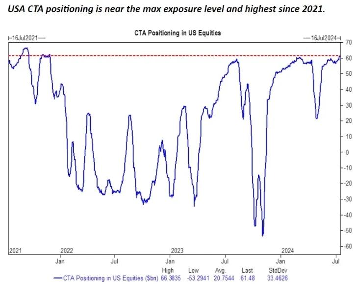 鲁伯纳说,在经历了一系列创新高的表现之后,美股市场暴露出资金流入疲软的风险,并且容易受到负面消息的影响。他进一步解释说,预计8月份不会有被动投资者或共同基金的资金流入。对于趋势跟踪系统基金来说,仓位已经达到了最大水平,这意味着没有进一步购买的空间。