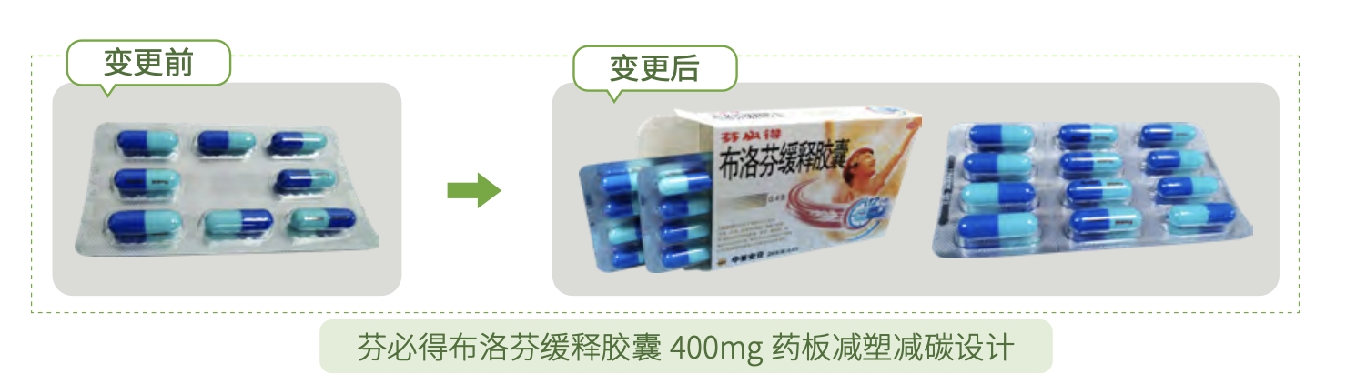 一个经典案例来自芬必得的包装设计。芬必得布洛芬缓释胶囊产品400毫克,原设计为一盒24个胶囊,分为三板铝塑料包装,每板8个胶囊。经改进后,每板原有的8粒被调整到每板12粒,使得一盒药的铝朔板从三块减少到两块。