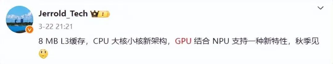 就爆料而言,在芯片架构上,其CPU 新的结构将用于大核和小核。包括 L3 还可以拉缓存 8MB,系统流畅度和游戏性能将得到显著提升。这一次,华为也提出了一项创新技术——GPU NPU 结合,有效分享 GPU 为了解决游戏帧率不稳定、功耗高等问题,负荷和压力。