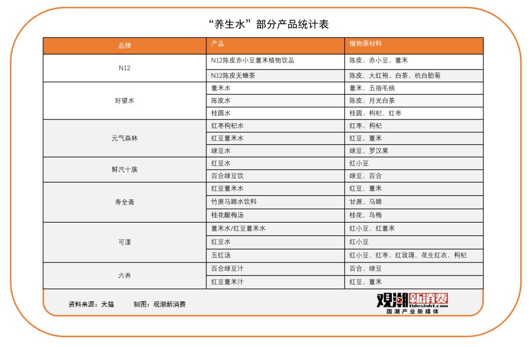 事实上,社交媒体上适合三伏天饮食的常见选择并不多,更不用说市场上有很多袋泡茶产品,冲泡方便,原料丰富,价格较低,进一步压缩了“保健水”的生存空间。