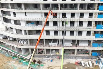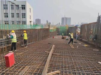 在项目现场,公交综合体ALC墙板正在全面加快安装,为后期建筑装修提供工作面。ALC墙板是一种新型绿色环保建筑材料,密度小于普通水泥材料,具有良好的耐火、防火、隔音、隔热、保温等特点。安装时采用干试施工方法,有效缩短施工周期。