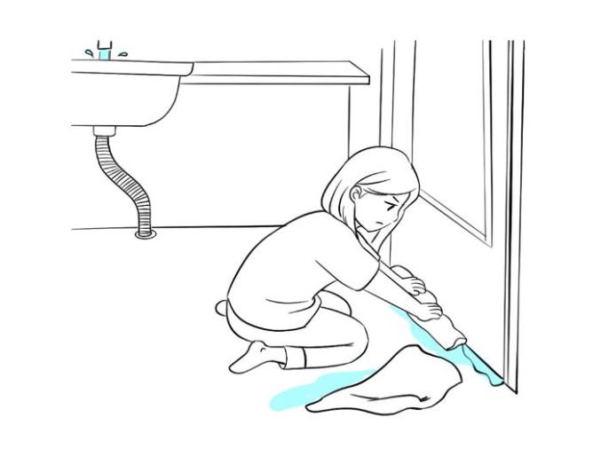 如果家里某个部位发生火灾,大火没有封住入口门,我们应该“低头猫腰”,逃离入口门。(注意:“猫头低腰”的动作是为了逃避烟雾。如果你通往入口门的距离没有烟雾,或者烟雾很小,不妨直接跑,这样会更快。当然,如果火还很小,你可以先不跑,试着把它扑灭。)