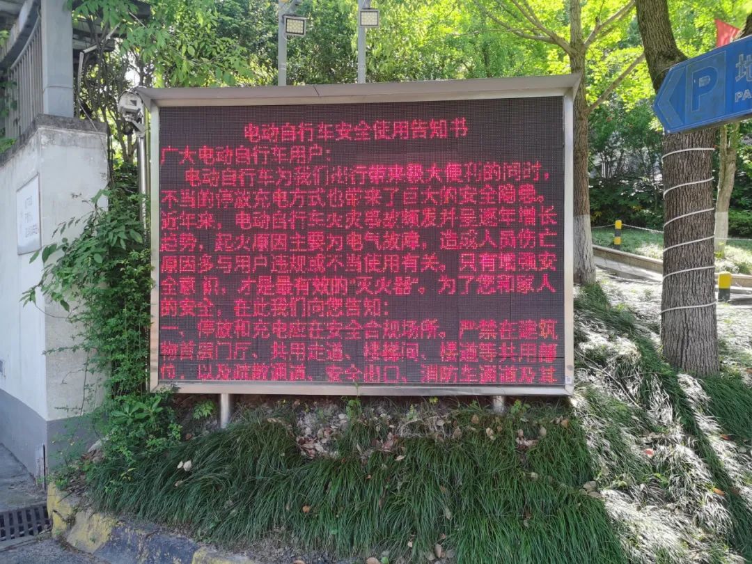 通过线上线下相结合的宣传方式,杨行社区充分利用社区云、社区交流、走廊群,积极动员平安志愿者、楼组长、“社区小先生”等宣传和告知电动自行车消防安全知识。共发放电动自行车安全通知书8万余份,走廊张贴安全提示书7200余份。同时,居民高度重视电动自行车停放和充电等安全问题,利用社区电子屏幕、海报等宣传方式营造安全氛围。