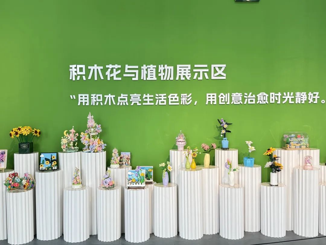 积木花卉与植物展厅集中展示了各种用积木拼接而成的植物,充满了治愈花草的自然童趣之美。