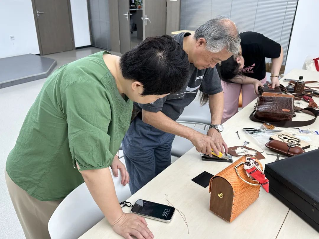 在陈建复的悉心指导下,大家都尝试自己做手工皮具。“大咖”技术体验营活动以轻松有趣的方式充分展示了“大咖”的特长和特点,同时也加深了不同居民区的“大咖”之间的交流和互动。