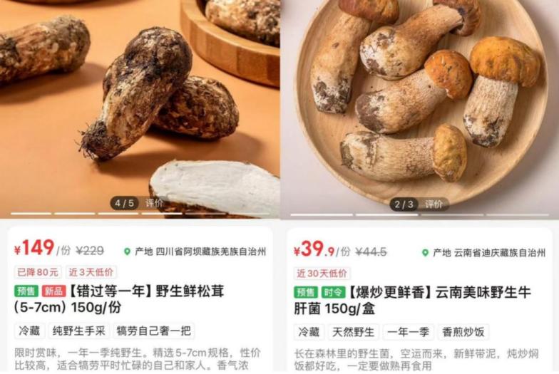 现在,在丁咚购物APP上,野生美味牛肝菌、鸡枞菌、老人头菌、青头菌等150g规格的价格都在100元以下,其中5~7cm未开伞的新鲜野生美味牛肝菌活动价格为39.9元/150g。根据项艺博士的说法,随着后续产量的增加,各种野生菌的价格也将大幅下降。