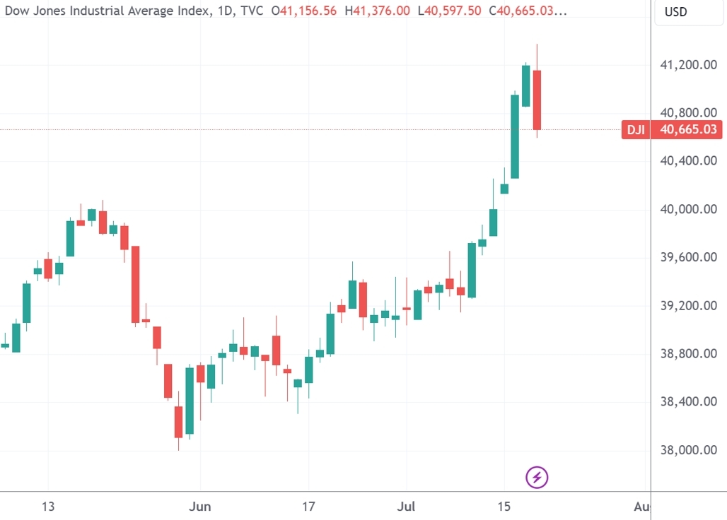 截至收盘,标准普尔500指数下跌0.78%,报5544.59点;纳斯达克指数下跌0.7%,报17871.22点;道琼斯工业指数下跌1.29%,报40665.02点,此前该指数连续6个交易日上涨。