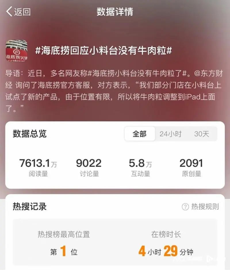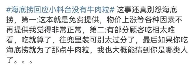 针对此事,海底捞相关负责人回应记者采访,称牛肉颗粒的供应方式已经调整到ipad。消费者可以在iPad调味栏选择牛肉末,无需额外付费,服务员会直接将牛肉末送到餐桌上。
