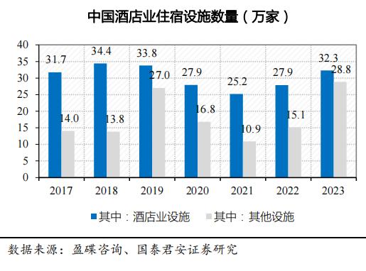 - 就酒店而言,中国的酒店数量从2022年的27.9万家增加到去年的32.3万家,并迅速恢复到近2019年的水平。