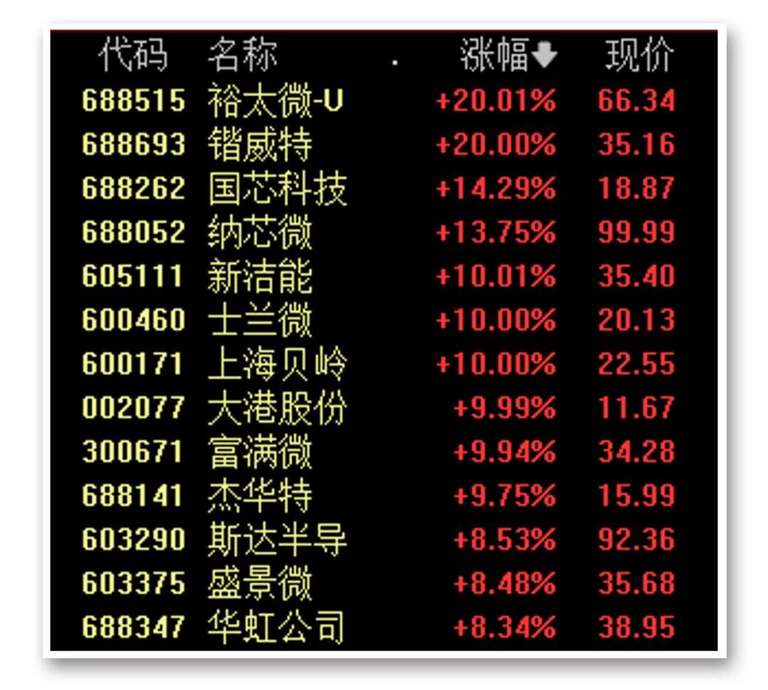 今日,半导体板块继续强势上涨,裕太微、威特20CM涨停。