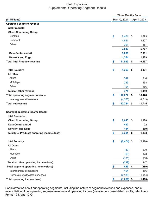 去年,英特尔报告称,2023年第一季度代工业务收入为1.18亿美元。今年,在新的报告计划中,我们将从2023年第一季度报告的48.31亿美元收入中减去47.13亿美元的“部门冲抵”来获得这一数字。