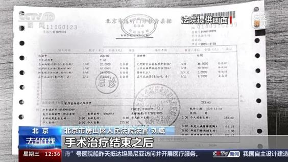 北京市房山区人民法院法官 刘威:之后,原告自费接受了手术治疗。手术治疗结束后,原告方便向我院提起诉讼,要求被告支付医疗费、误工费、营养费、伤残赔偿等多项财产损失。