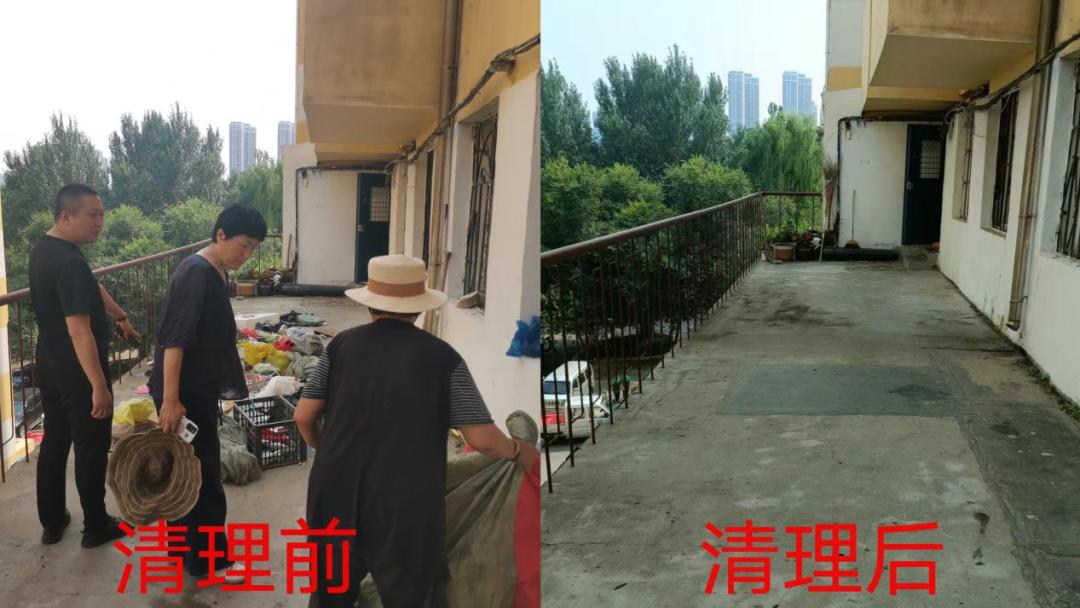 哈平路街道城管部、执法中队、安装社区的工作人员集中清理了小区内堆放的垃圾。经过三个小时的密切合作和不懈努力,堆积如山的垃圾一个个被清理干净,混乱的走廊和庭院焕然一新。