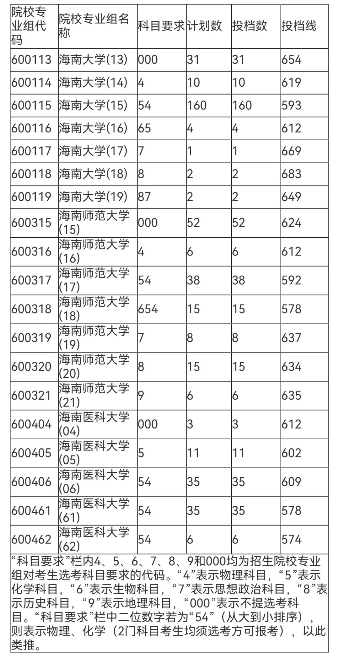 2024年海南省普通高校招生地方专项计划平行志愿高校专业组投资分数线