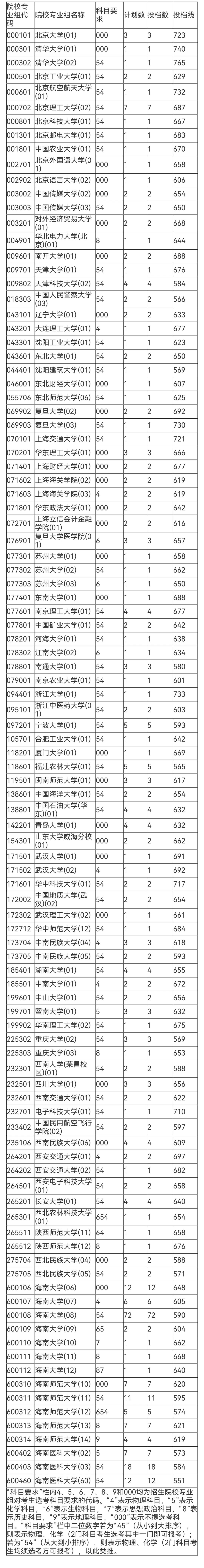一、2024年海南省普通高校招生国家专项计划平行志愿高校专业组分数线