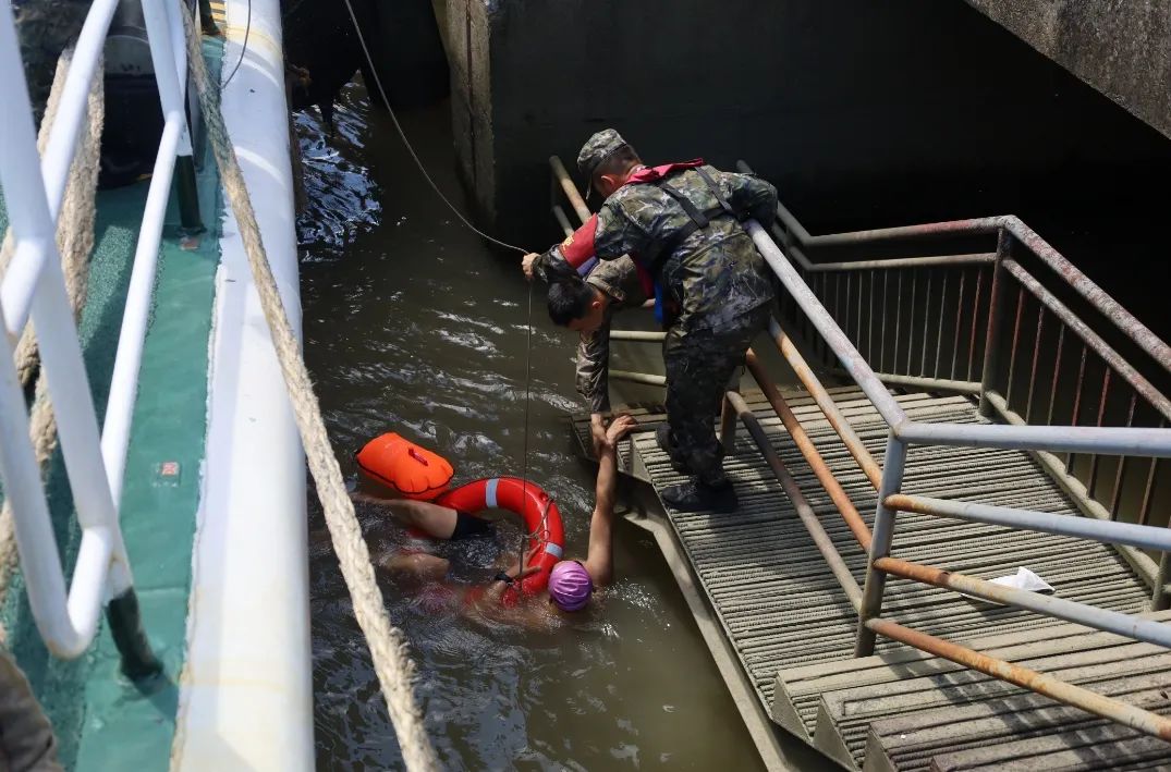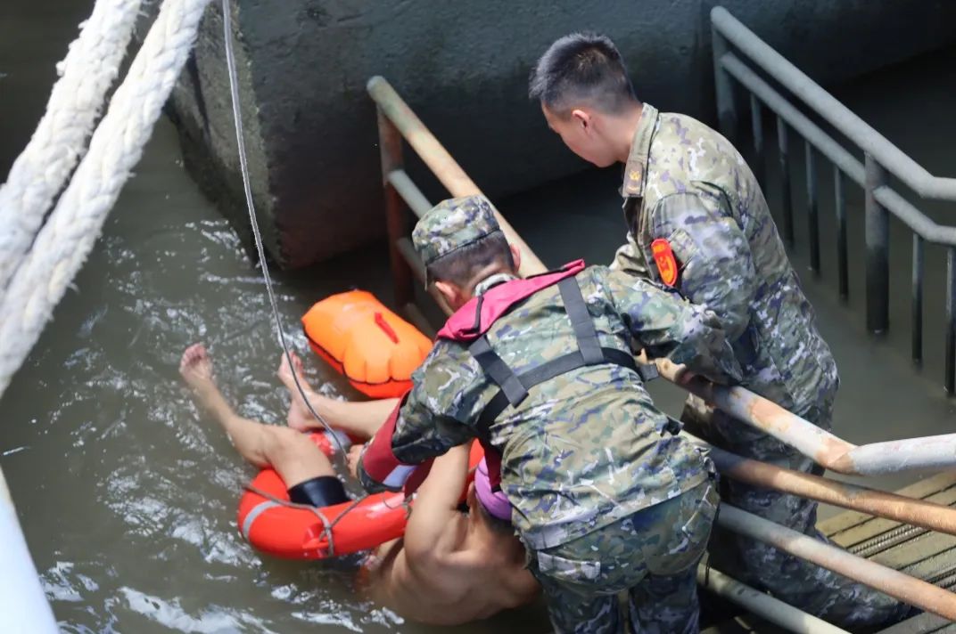 经过10分钟的救援,被困人员被成功救至岸上,安全脱险。经检查,当时“野泳”人员透支体力,补充水休息后自行离开。