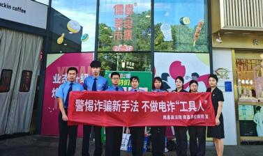 7月17日,南昌县法院联合南昌县检察院走进玺悦城生活广场,开展“警惕诈骗新手法”,旨在进一步提高辖区内群众识骗防骗能力,营造全民反诈骗、全社会反诈骗的浓厚氛围。 防范电信网络诈骗宣传活动,不做电诈‘工具人’。