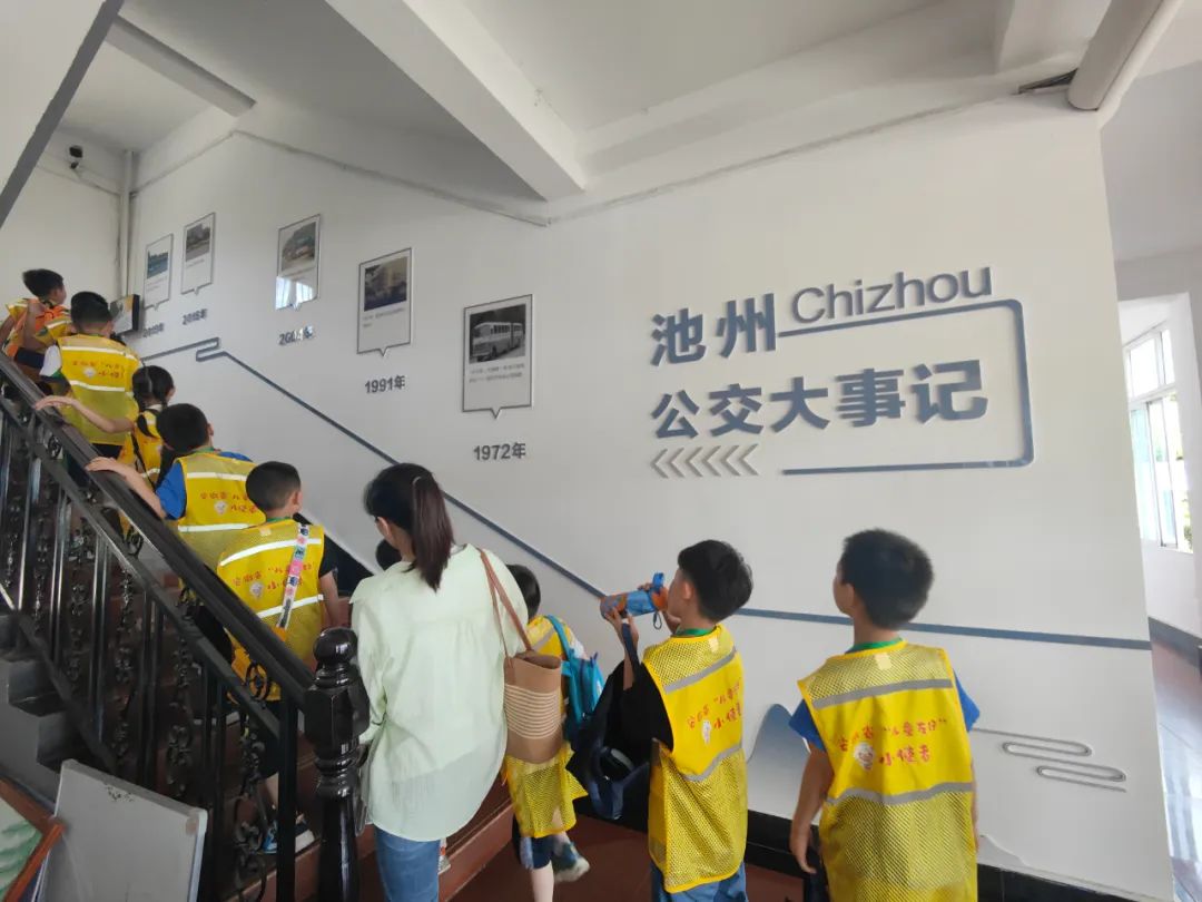 公共汽车是城市流动的记忆媒介,孩子们跟随评论员参观公司党建文化墙,与珍贵的老照片进行“对话”, 详细了解池州公交大事记,回顾公交公司自1972年以来50多年的发展历程。在评论员生动的叙述中,他们感受到了一代又一代公交车工作者的真诚初衷,为人民的幸福旅行披肝沥胆。
