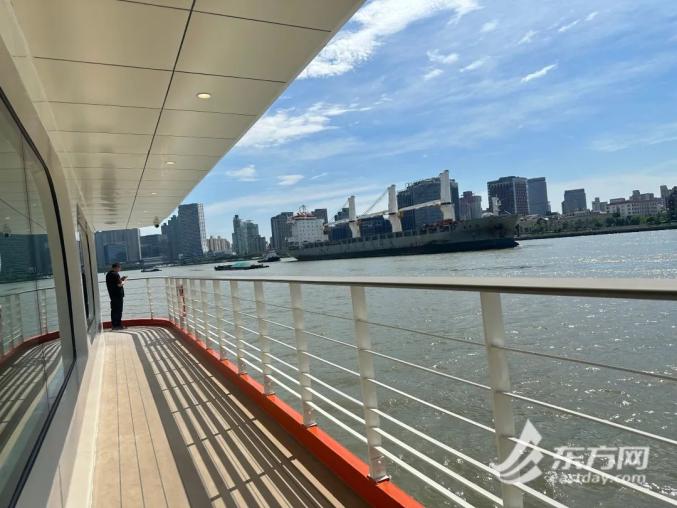 值得一提的是,与以往的轮渡不同,一般轮渡只在船尾留有一个观景平台,不方便乘客欣赏浦江两岸的美景。然而,“上海轮渡11”制定了一个环形过道,沿着过道,没有任何遮挡。上海浦江两岸的风景一目了然。