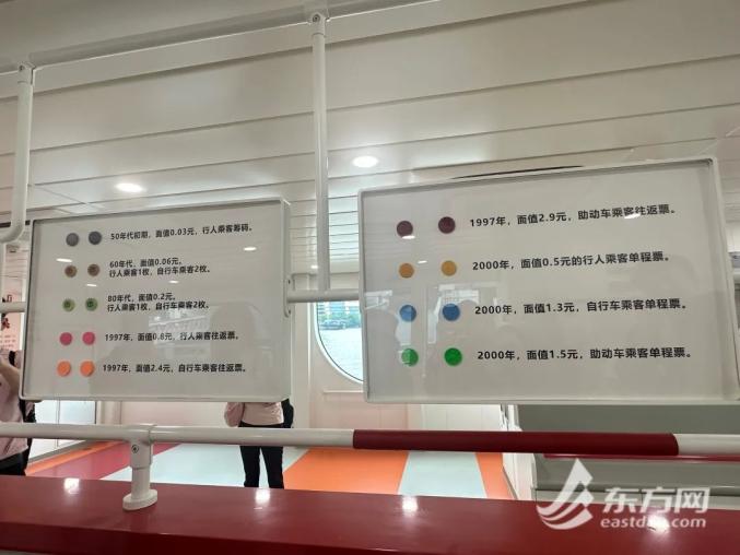 一楼船仓化身为“上海轮渡移动博物馆”。围绕“百年轮渡事件”和“红色印记”两个主题,轮渡变化通过文字、照片和实物展示与城市发展融为一体。“这些月票和筹码都是回忆,一下子把我拉回了百万市民过河的时代。”蔡老伯的语气相当激动。