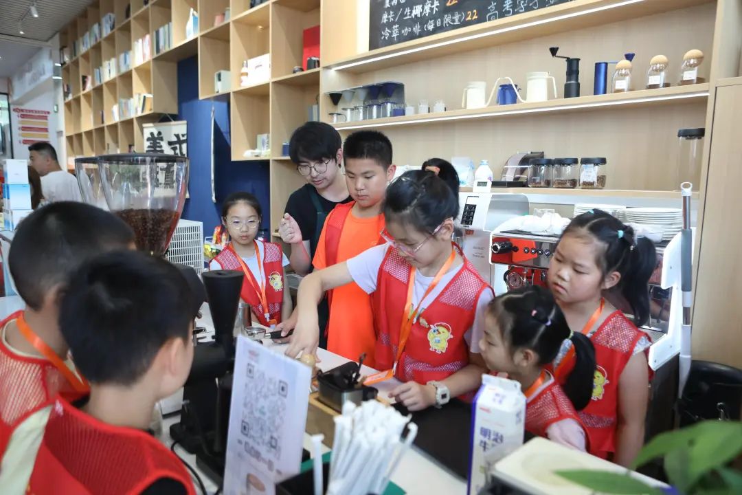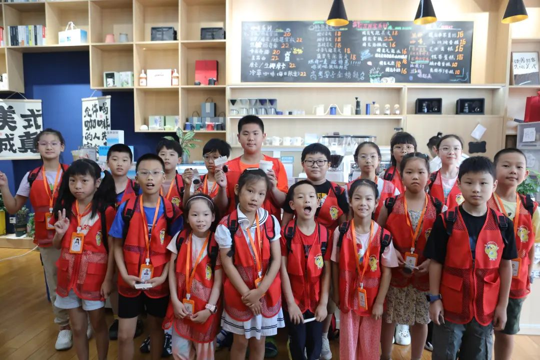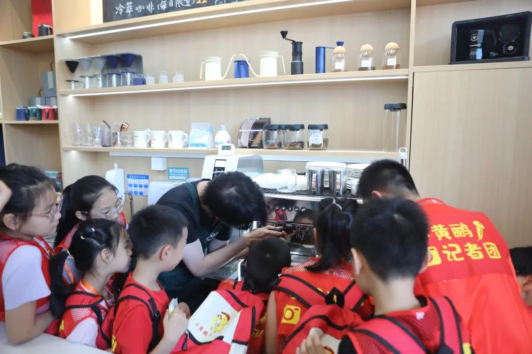 在创意佳园街区党群服务站,小记者们在工作人员的详细讲解下,对党群服务站在党建引领、社区服务等方面的重要作用和积极作用有了深刻的认识,不仅让他们对党群服务站有了更直观的认识,也为后续的新闻报道提供了大量的素材。在二楼的“咖啡阅读吧”中,小记者们分组体验了手工制作的咖啡花和咖啡渣。在老师的指导下,大家要么在容器里放入适量的咖啡渣,做出独特的咖啡肥皂,要么一步步体验“一杯咖啡是怎么做出来的”,从研磨咖啡粉、制作咖啡液、用奶泡拖出美丽的心形。