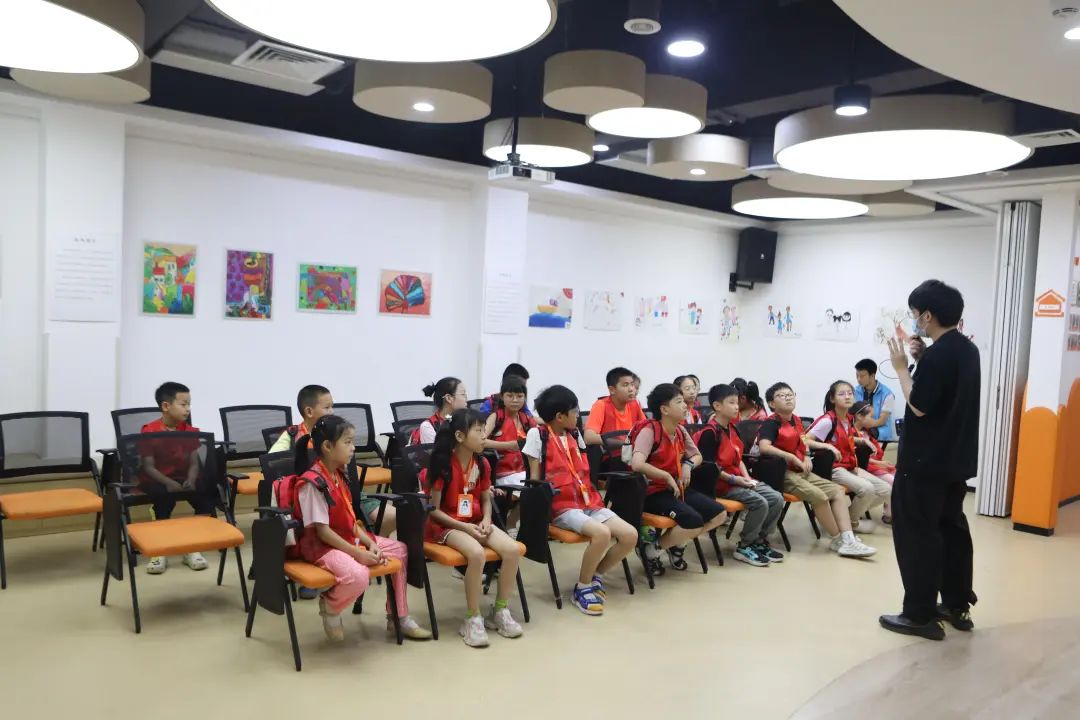 随后,年轻的记者们兴致勃勃地来到五里桥街道儿童服务中心,在讲解老师的带领下,一起参观了中心服务设施。在提问互动中,年轻的记者举手提问,不仅探索了服务细节,也对科学原理感到好奇。老师耐心细致地回答了每一个问题,既满足了孩子的好奇心,又进一步激发了他们对知识和社区的热爱。