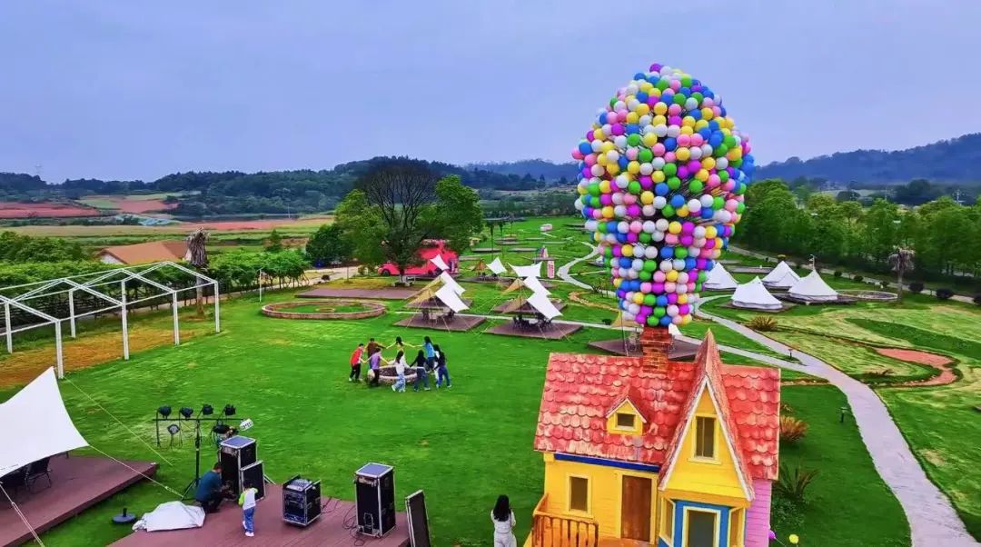 景区聚焦地方特色水果文化、山水田园生活和研究实践教育,逐步形成以“空中草莓区”、“乌托邦露营烧烤区”、“沙岛游乐区”、“稻荷青少年劳动教育区”、“生产种植地”为主的五大功能板块。